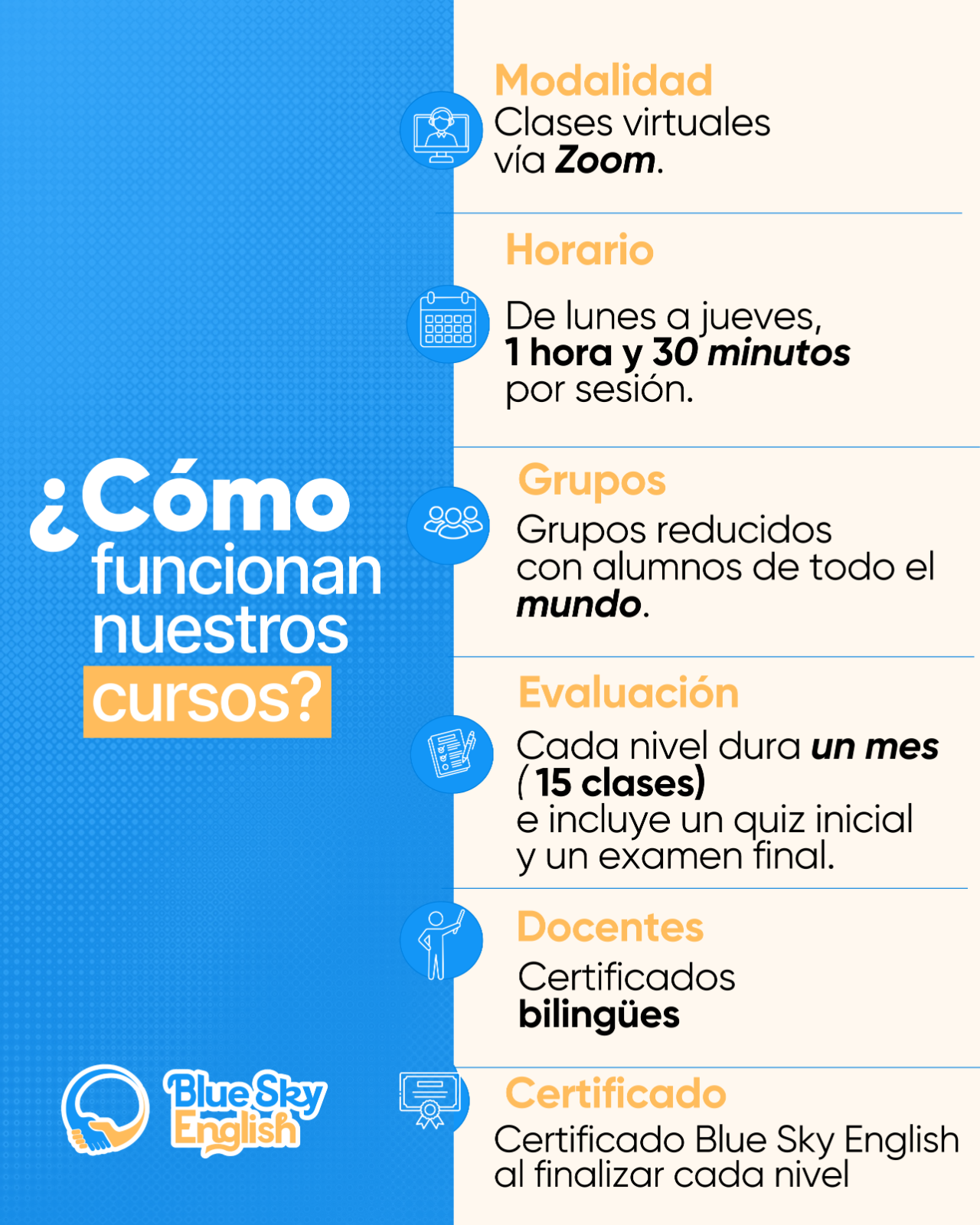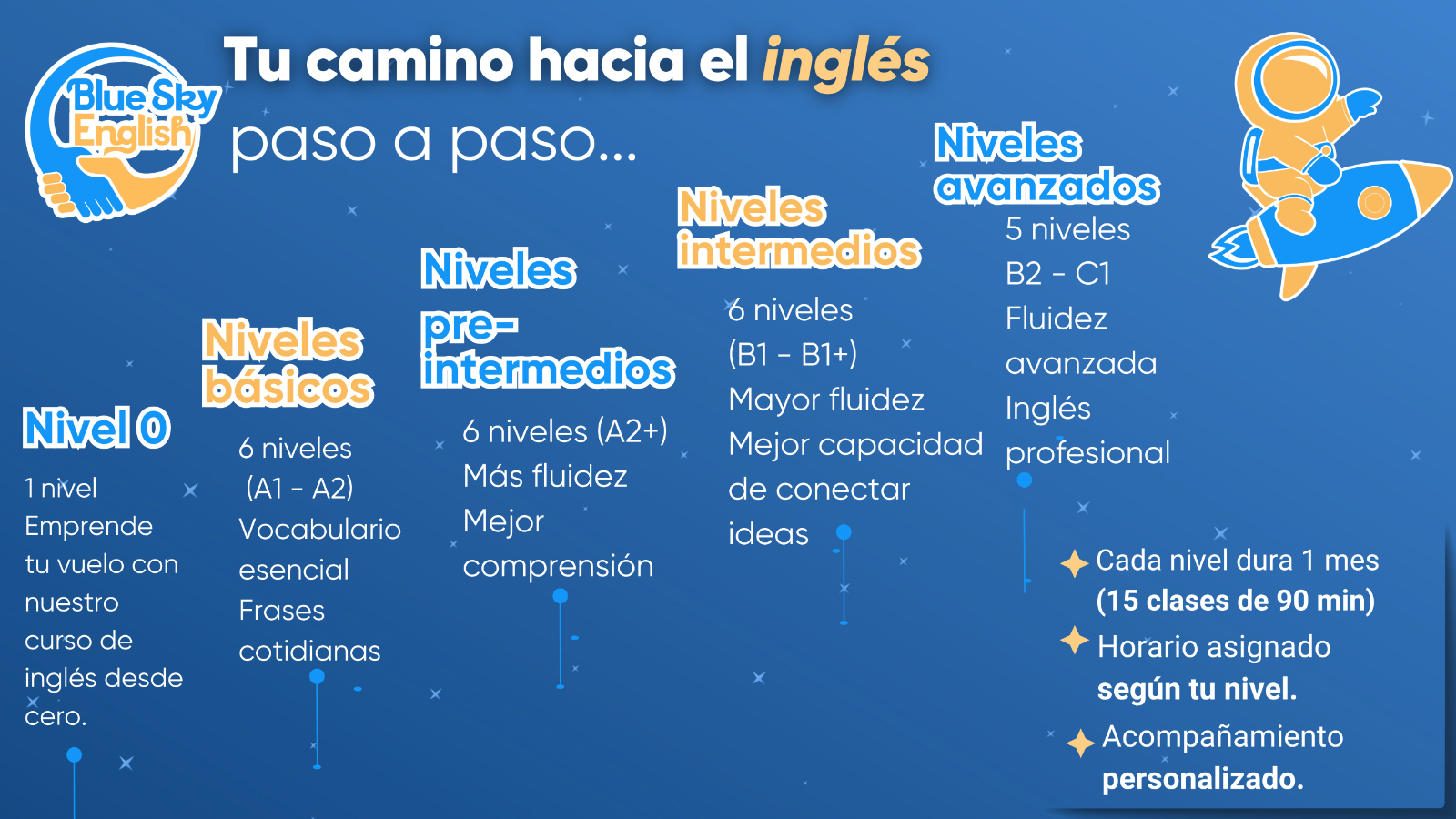 Para conocer tu nivel, debes dar nuestro exámen de colocación, así podremos ofrecerte los horarios disponibles de acuerdo a tu nivel.